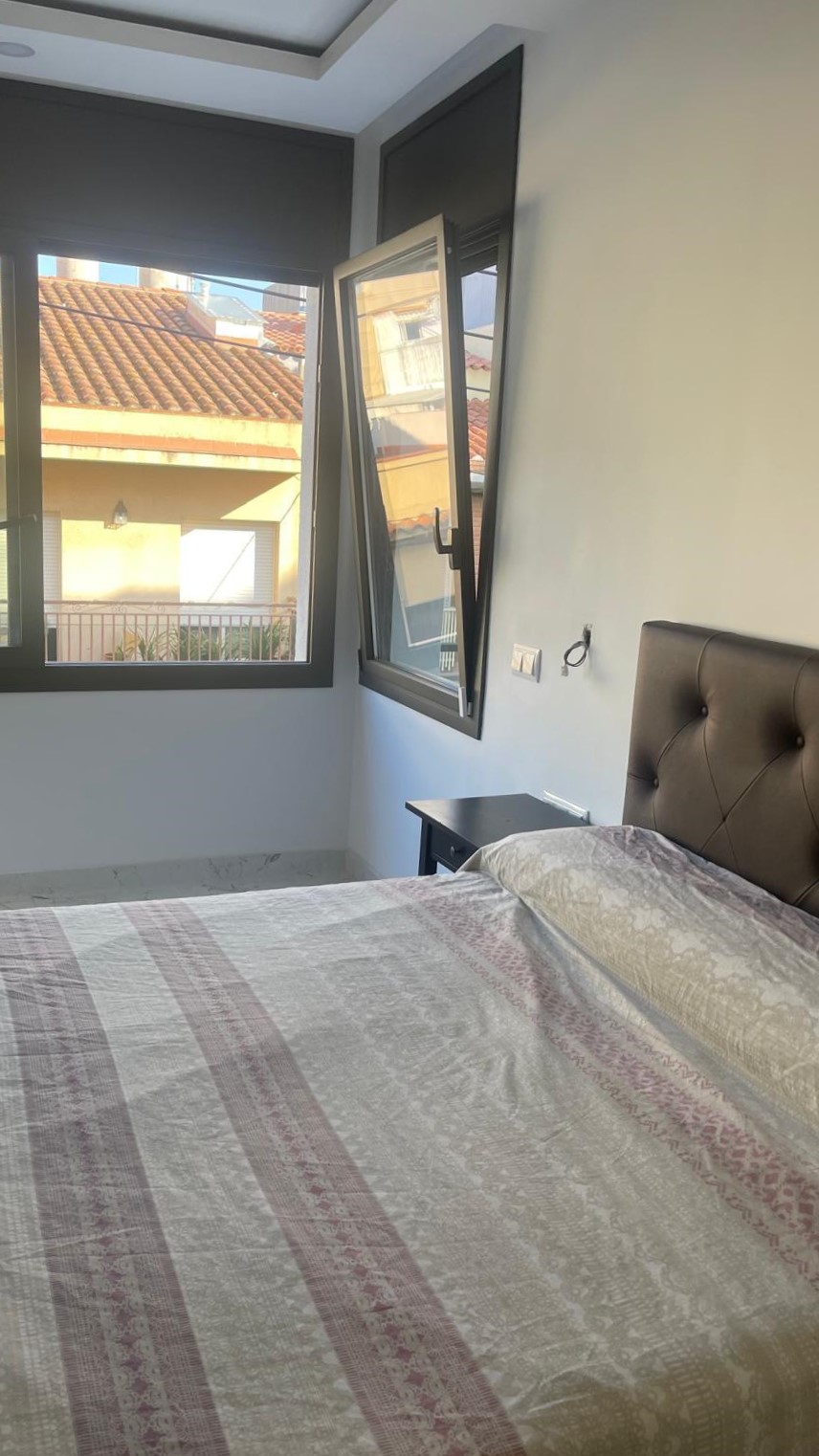 Amplio salón-comedor, cocina independiente equipada con mobiliario blanco de formica y vitrocerámica, además de dos baños completos.